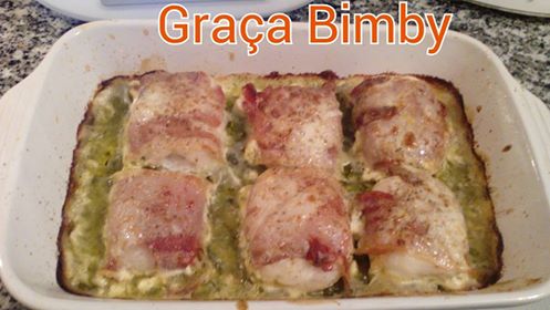Embrulhos de pescada e presunto gratinados com esparregado de ervilhas