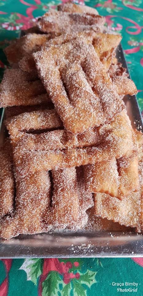 • Frite em óleo abundante, escorra o óleo em papel absorvente e passe no açúcar e canela e saboreei.