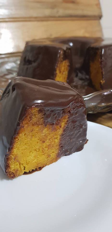 Já tinha visto num site ou a circular pelo facebook a uns tempos atrás um bolo de cenoura com brigadeiros no interior, mas não sei onde. E como tinha cá uns brigadeiros já feitos que a minha filha fez, bem brigadeiros não eram bem, eram a massa dos brigadeiros, pois ela faz a receita, coloca numa taça e vai comendo a colherada, que enrolar brigadeiros da trabalho.